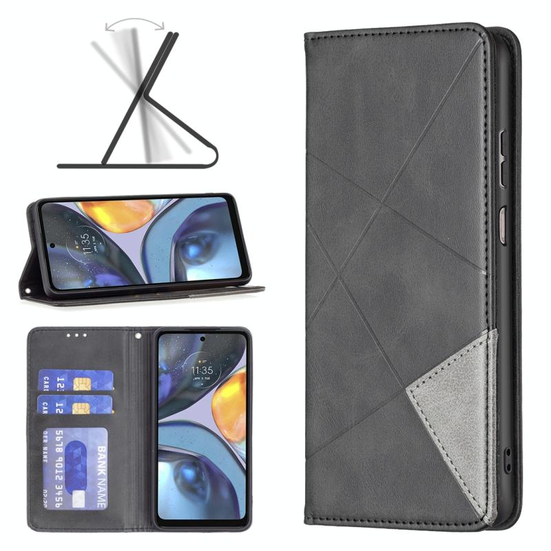 Θήκη κινητού τηλεφώνου από δέρμα με αόρατο μαγνητικό κλείσιμο για Motorola Moto G22 Prismatic (Γκρι)
