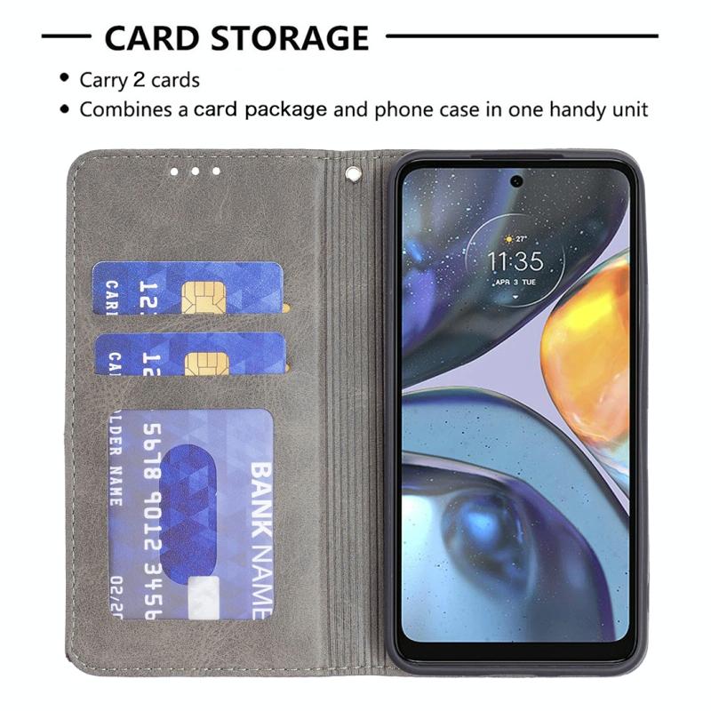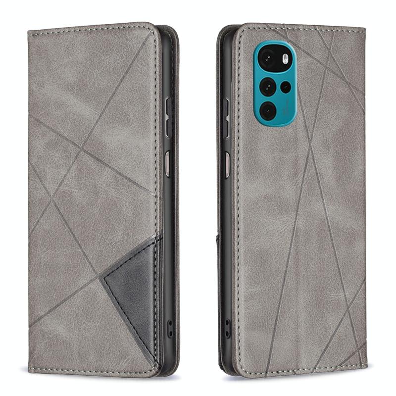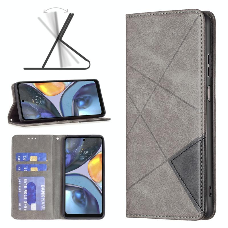 Θήκη κινητού τηλεφώνου από δέρμα με αόρατο μαγνητικό κλείσιμο για Motorola Moto G22 Prismatic (Γκρι)