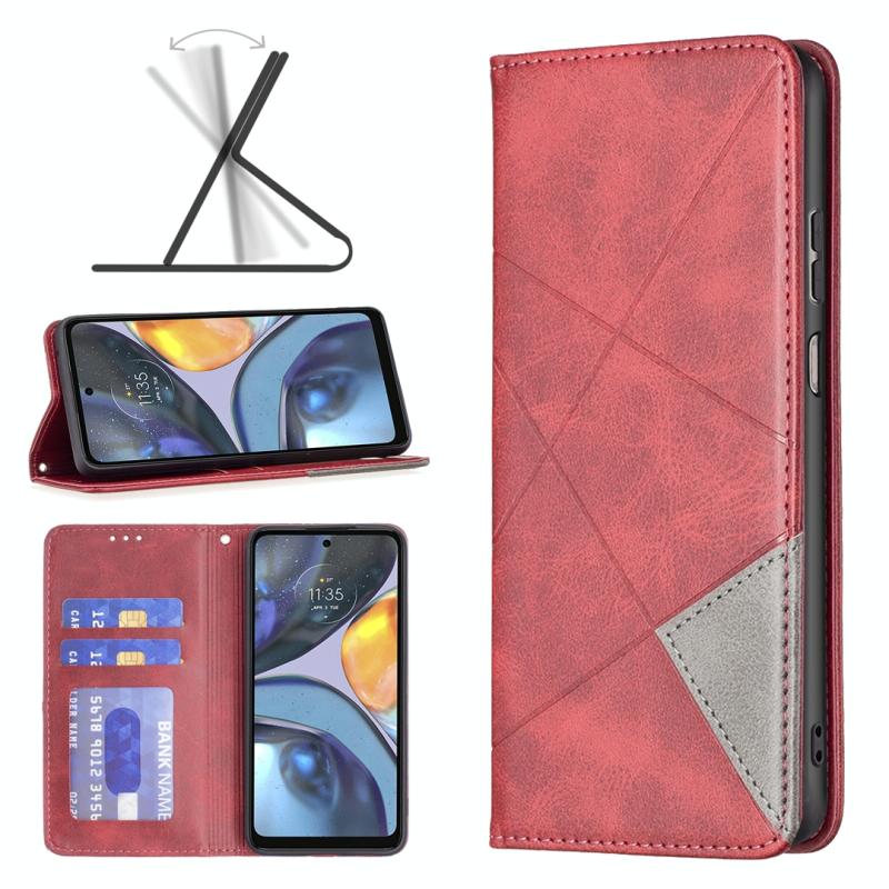 Θήκη κινητού τηλεφώνου από δέρμα με αόρατο μαγνητικό κλείσιμο για Motorola Moto G22 Prismatic (Γκρι)