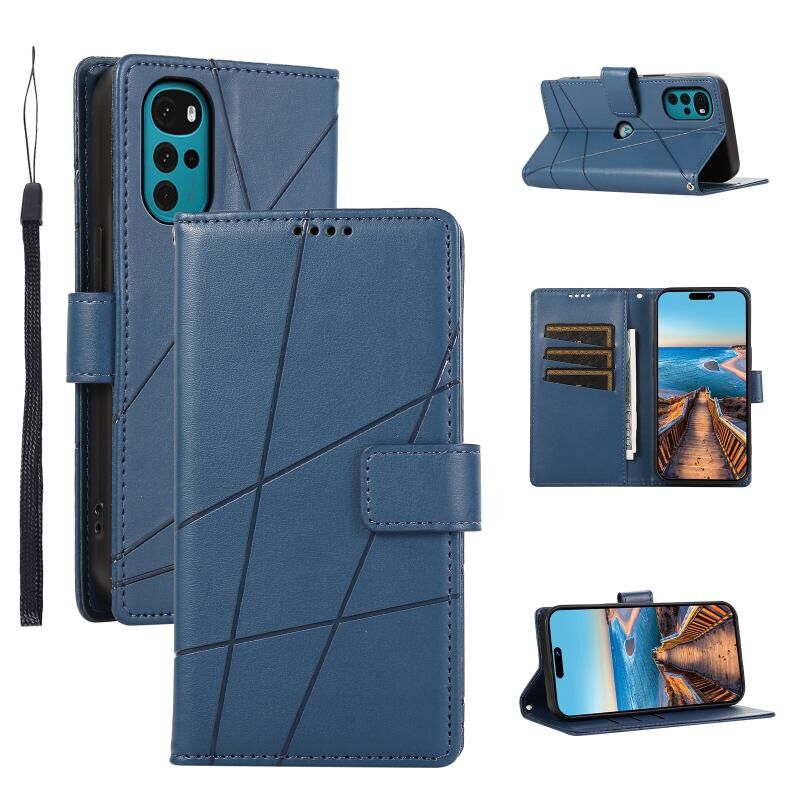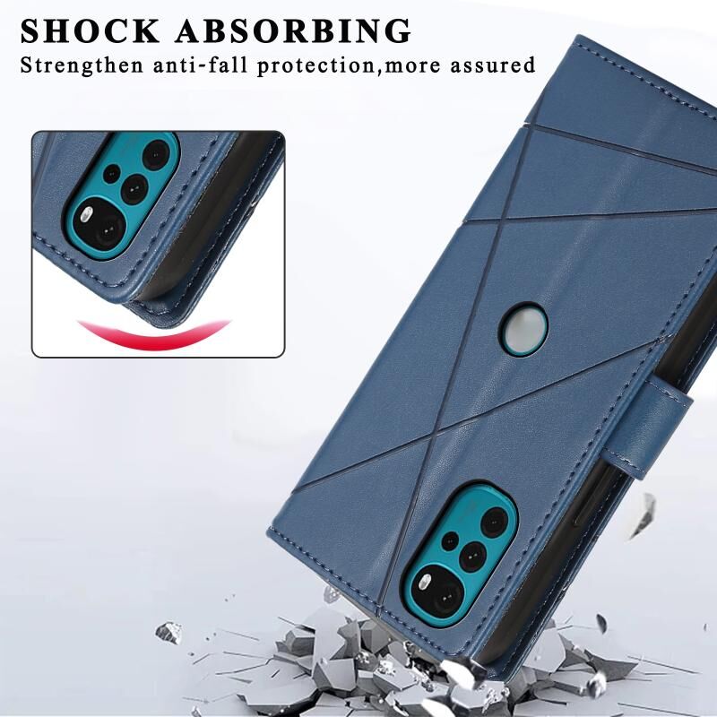 Θήκη κινητού τηλεφώνου Motorola Moto G22 PU με ανάγλυφη υφή γνήσιου δέρματος (Μπλε)