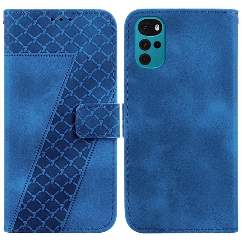 For Motorola Moto G22 Seven-shaped Embossed Leather Phone Case(Blue)