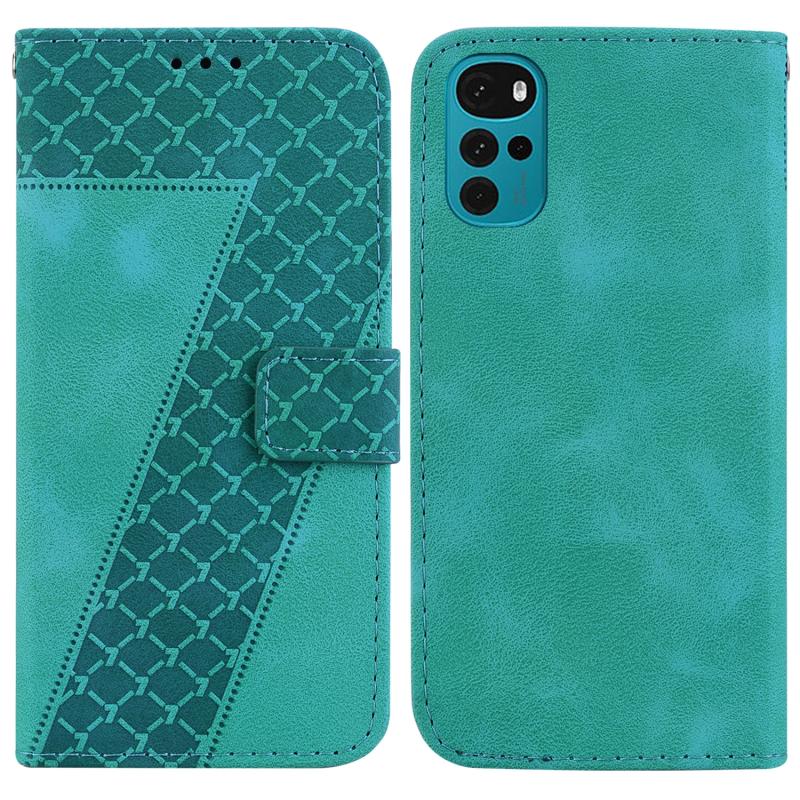 For Motorola Moto G22 Seven-shaped Embossed Leather Phone Case(Green)