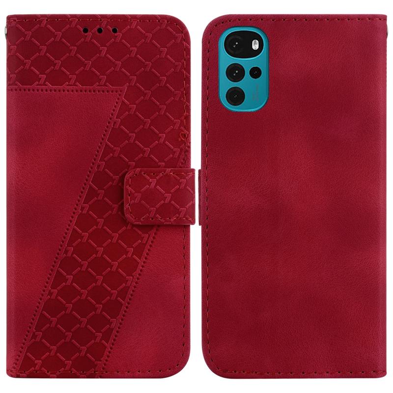 For Motorola Moto G22 Seven-shaped Embossed Leather Phone Case(Red)