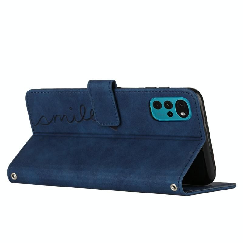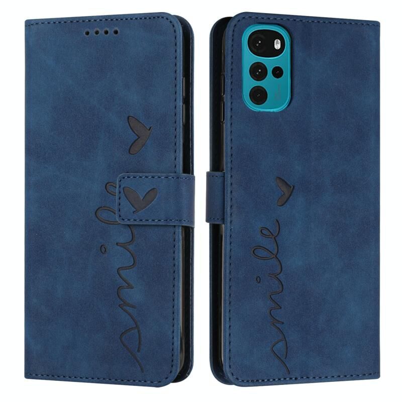 Για Motorola Moto G22 δέρμα αίσθηση καρδιά μοτίβο δερμάτινη θήκη τηλεφώνου (μπλε)