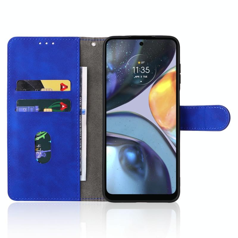 For Motorola Moto G22 Skin Feel Magnetic Buckle Calf Texture PU Phone Case(Blue)