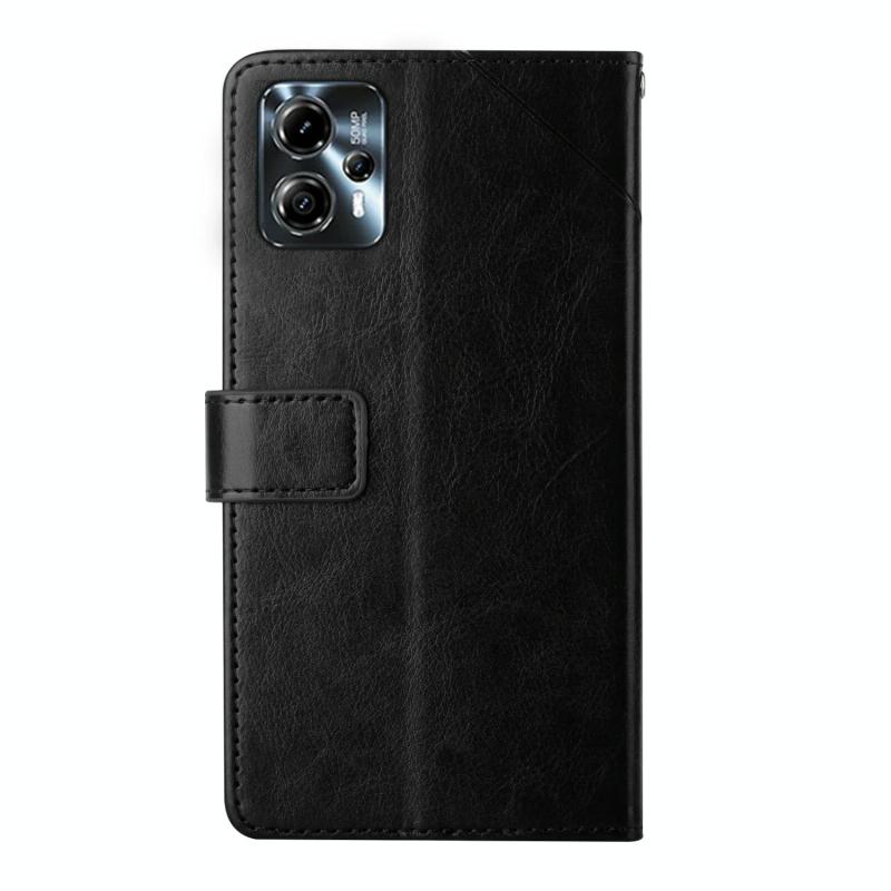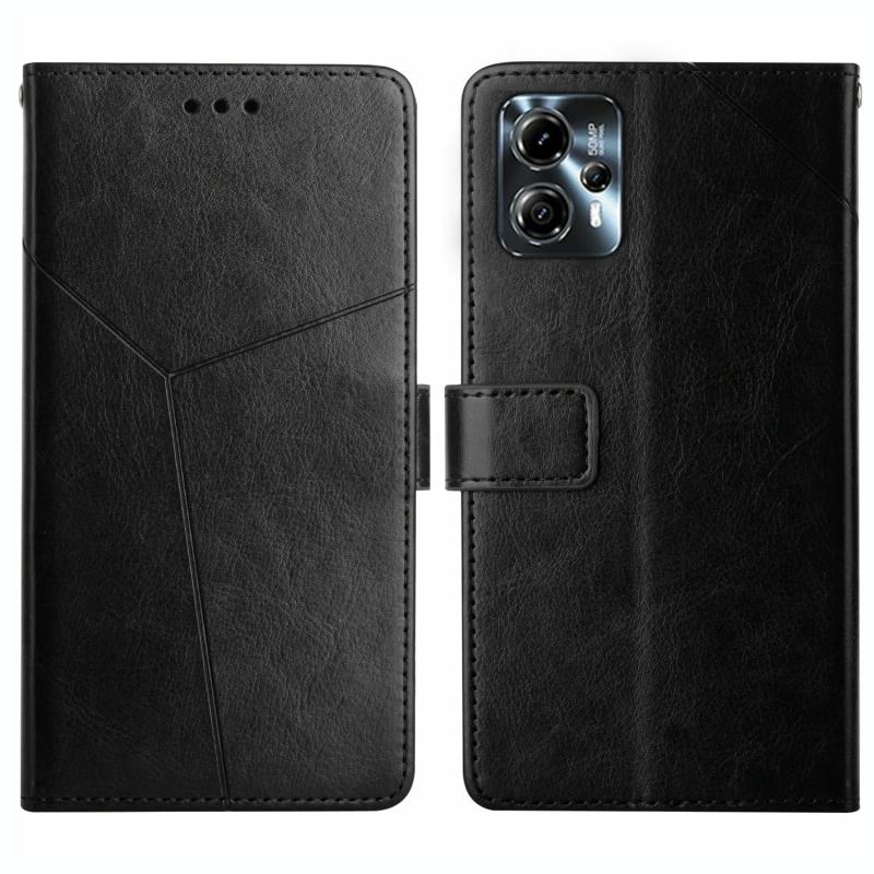 Θήκη τηλεφώνου τύπου flip από δέρμα με μοτίβο σε σχήμα Υ για Motorola Moto G23 4G/G13 4G HT01 (Μαύρο)