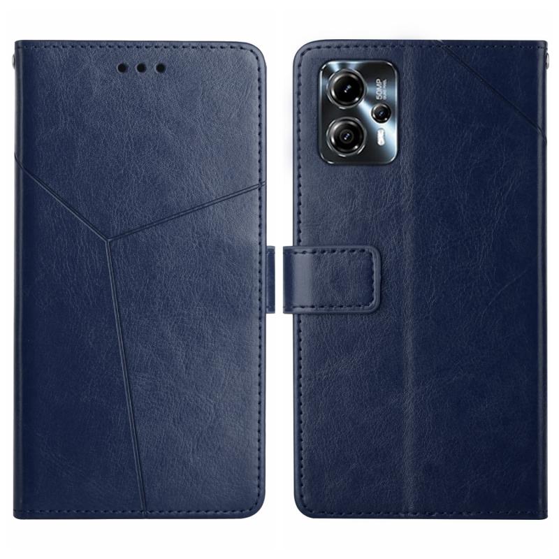 Θήκη τηλεφώνου τύπου flip από δέρμα με μοτίβο σε σχήμα Υ για Motorola Moto G23 4G/G13 4G HT01 (Μπλε)