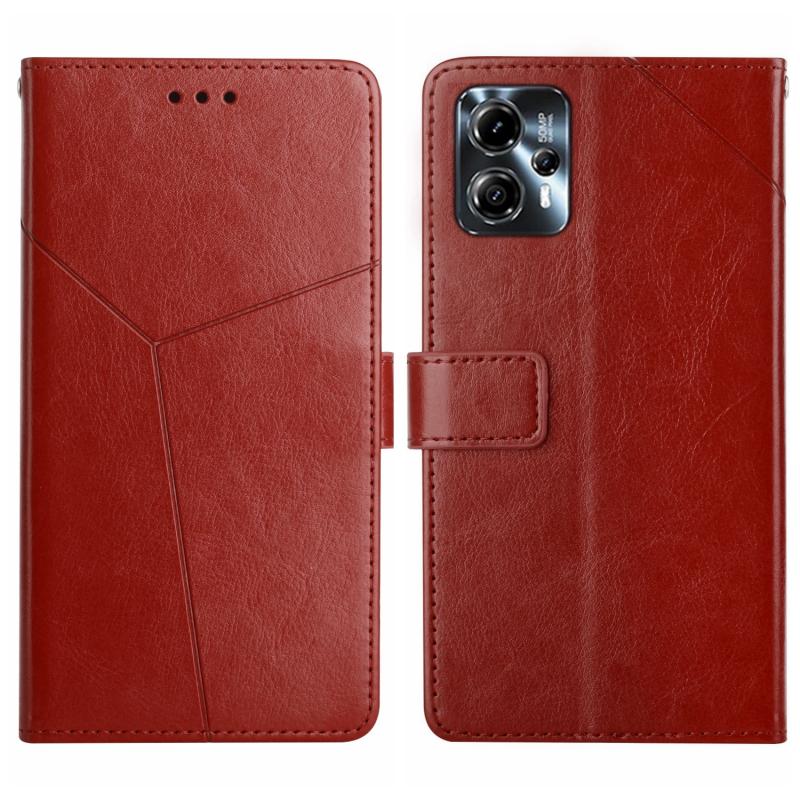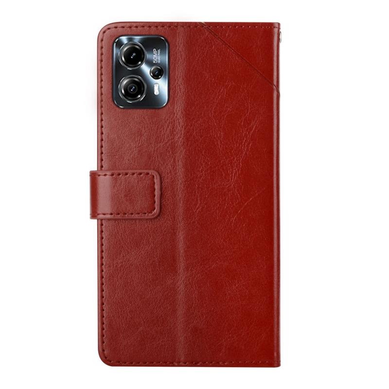 Θήκη τηλεφώνου τύπου flip από δέρμα με μοτίβο σε σχήμα Υ για Motorola Moto G23 4G/G13 4G HT01 (Καφέ)