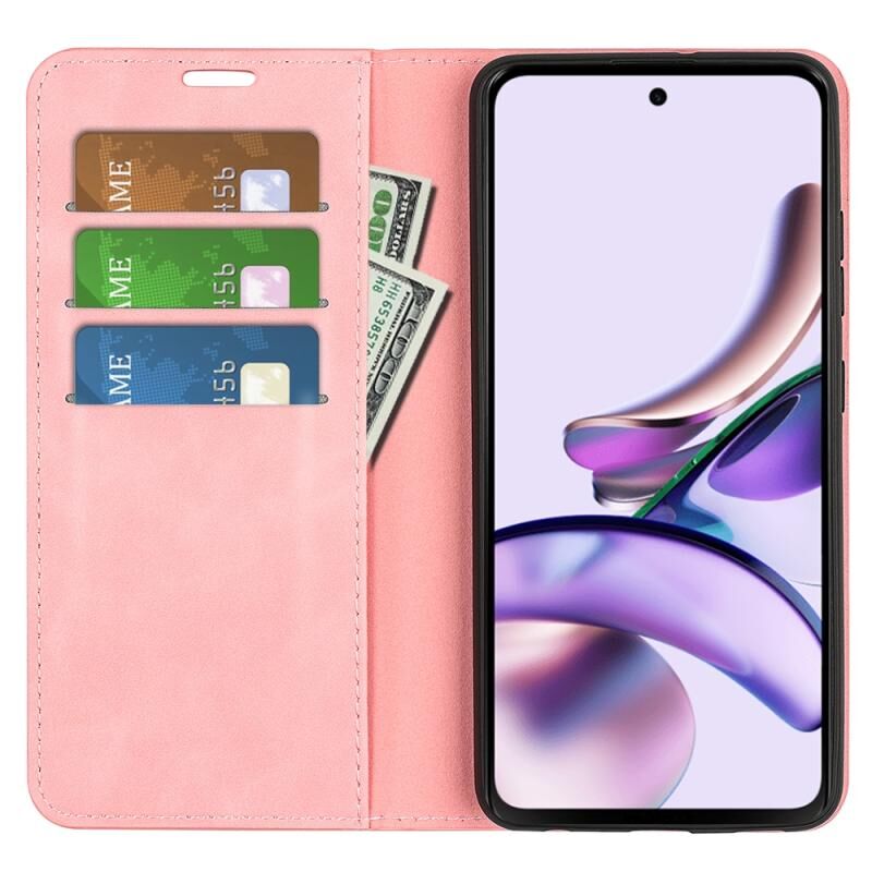Για Motorola Moto G23 4G / G13 4G Retro-skin Μαγνητική δερμάτινη θήκη τηλεφώνου με αναρρόφηση (ροζ)