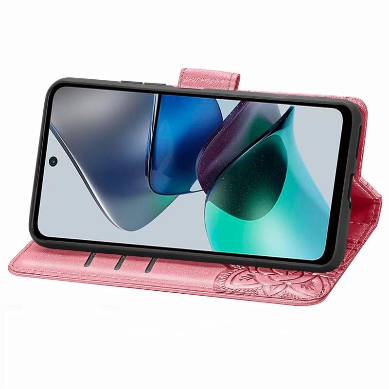 Θήκη τηλεφώνου από δέρμα με ανάγλυφο σχέδιο πεταλούδας και λουλουδιών για Motorola Moto G23 (ρόζ)