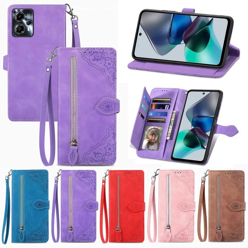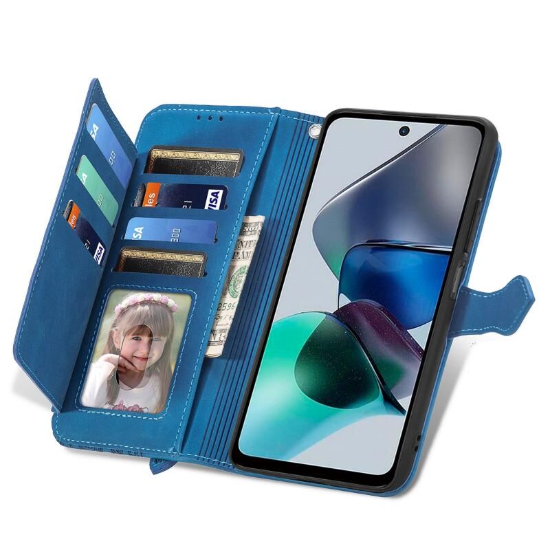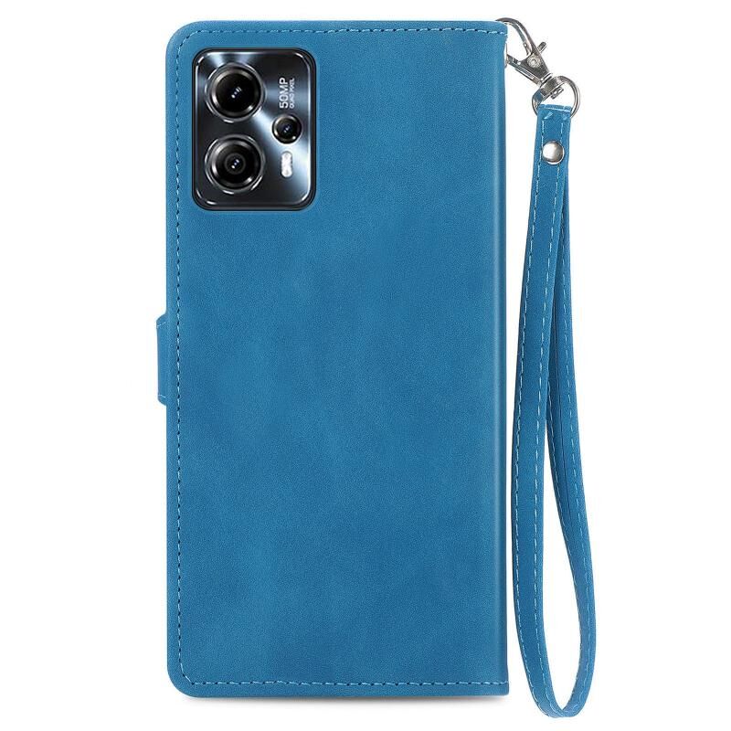 Για Motorola Moto G23 ανάγλυφο λουλούδι φερμουάρ δερμάτινη θήκη τηλεφώνου (μπλε)