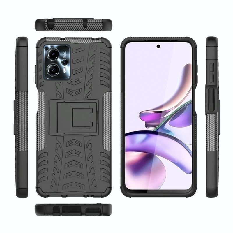 Για Motorola Moto G23 Tire Υφή TPU + PC τηλέφωνο υπόθεση με θήκη (μαύρο)