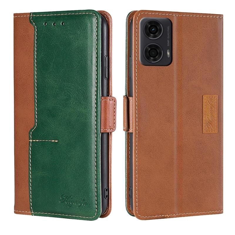 Για Motorola Moto G24 4G αντίθεση χρώμα πλευρά πόρπη δερμάτινη θήκη τηλεφώνου (ανοιχτό καφέ + πράσινο)
