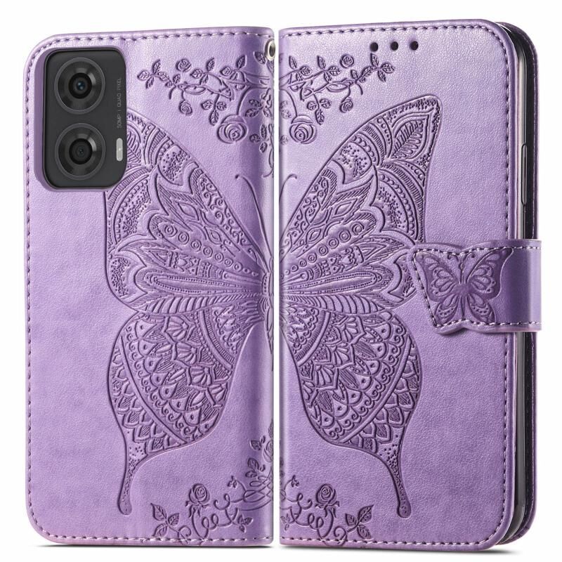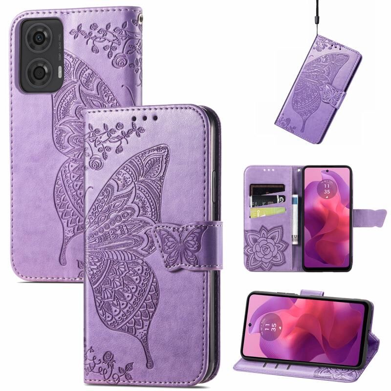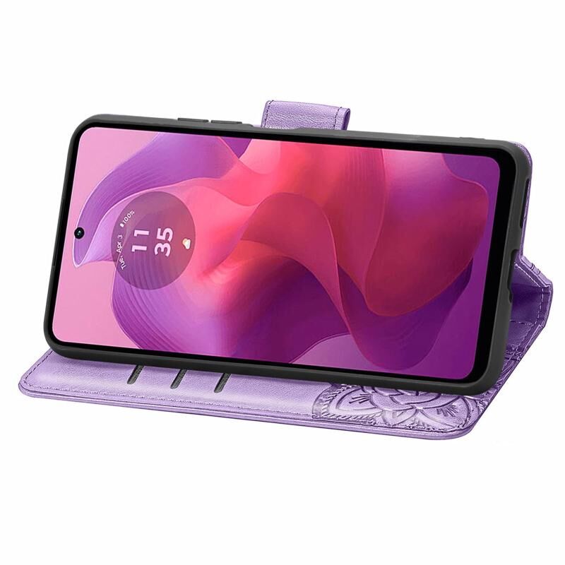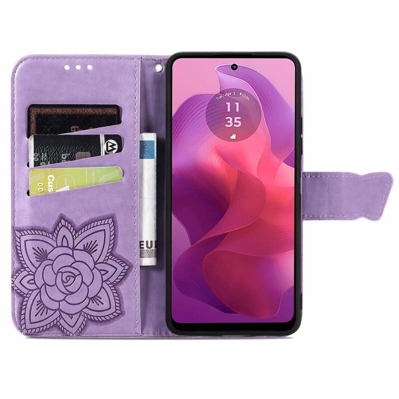 Θήκη κινητού τηλεφώνου δερμάτινη ανάγλυφη με σχέδιο πεταλούδας και λουλουδιών για Motorola Moto G24 (Μαύρο)