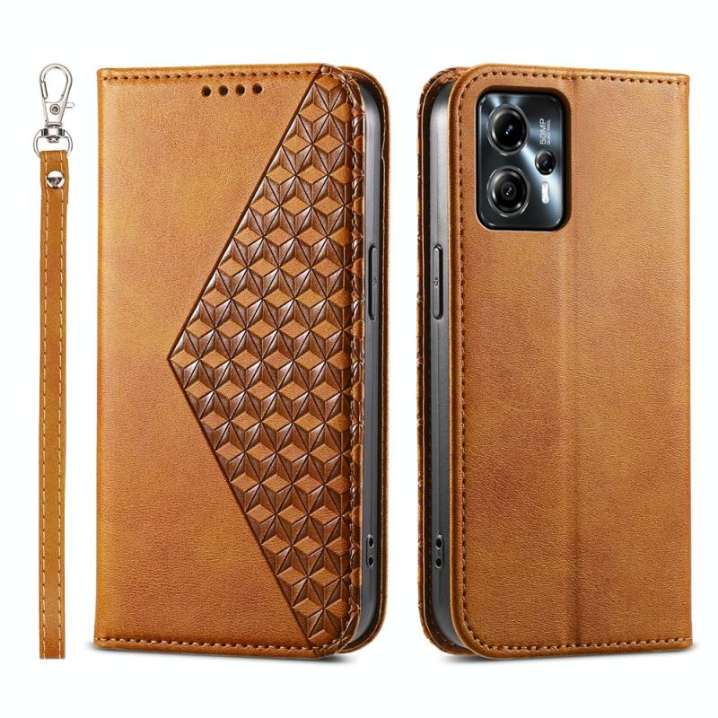 For Motorola Moto G24 Cubic Grid Calf Texture Magnetic Leather Phone Case(Yellow)