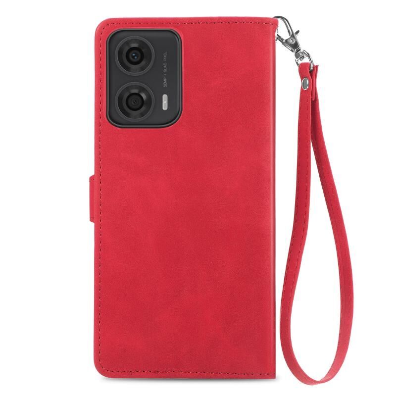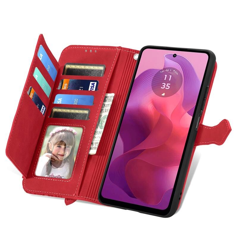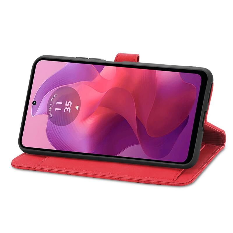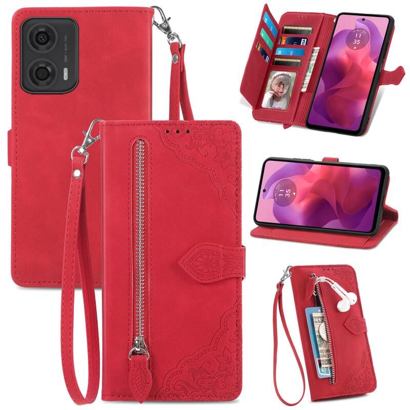 Θήκη κινητού τηλεφώνου δερμάτινη με φερμουάρ και ανάγλυφο λουλούδι για Motorola Moto G24 (Ροζ)