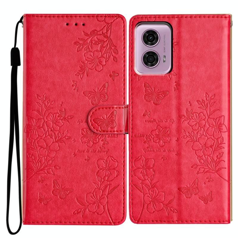 Θήκη τηλεφώνου από δέρμα με πεταλούδες και λουλούδια για Motorola Moto G24 / G04 (Χρυσό)