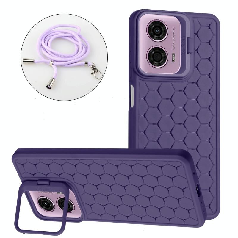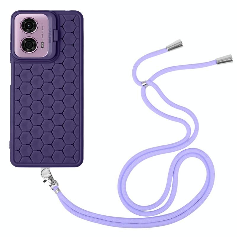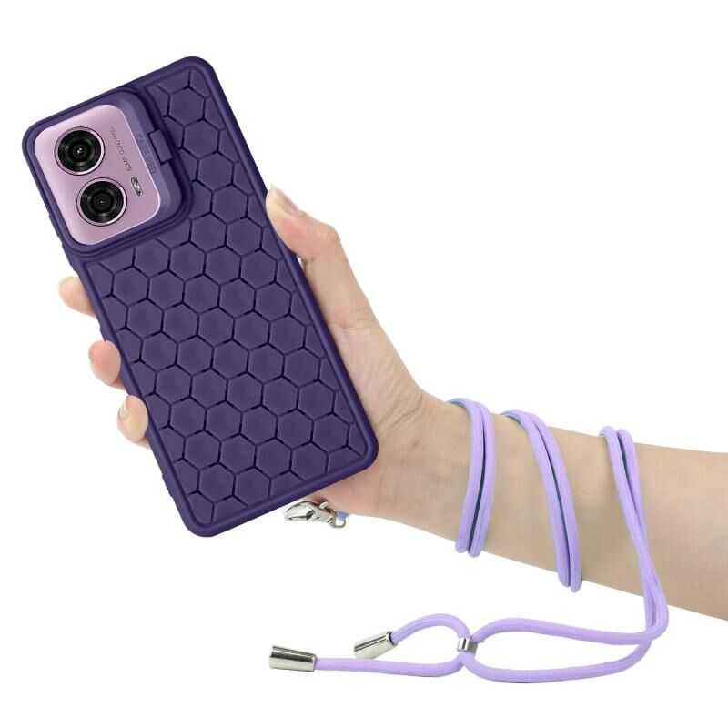 Για Motorola Moto G24 / G04 Honeycomb Ακτινοβολία κάτοχος TPU τηλέφωνο υπόθεση με κορδόνι (μωβ)