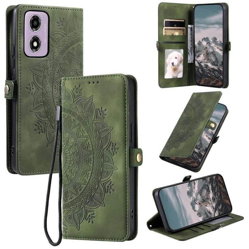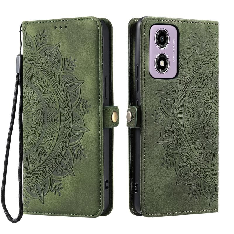Για Motorola Moto G24 / G04 Skin Feel Totem ανάγλυφη δερμάτινη θήκη τηλεφώνου (βαθύ πράσινο)