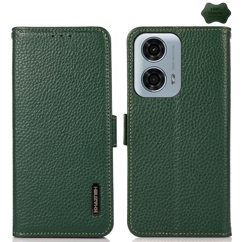 For Motorola Moto G24 KHAZNEH Side-Magnetic Litchi Genuine Leather RFID Phone Case(Green)