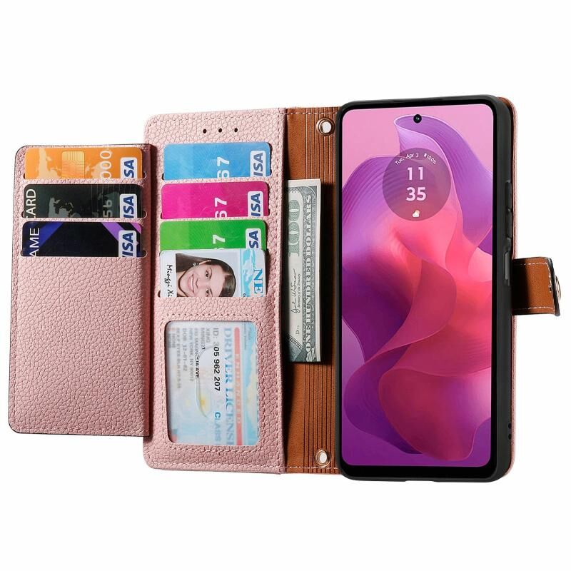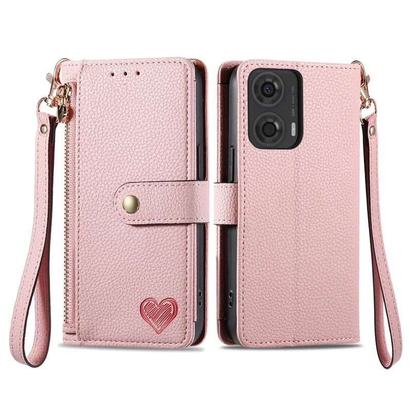 Για Motorola Moto G24 Θήκη Δερμάτινη με Λουρί και Φερμουάρ Love (Ροζ)