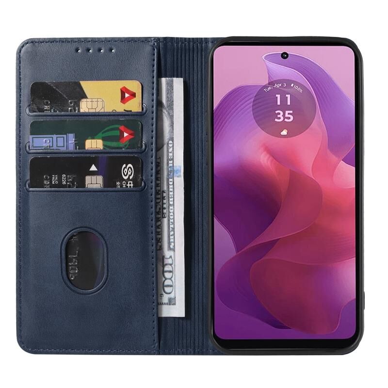 Για Motorola Moto G24 Μαγνητικό κλείσιμο δερμάτινη θήκη τηλεφώνου (μπλε)