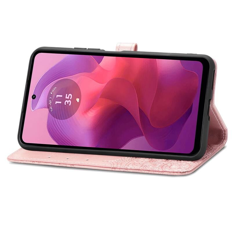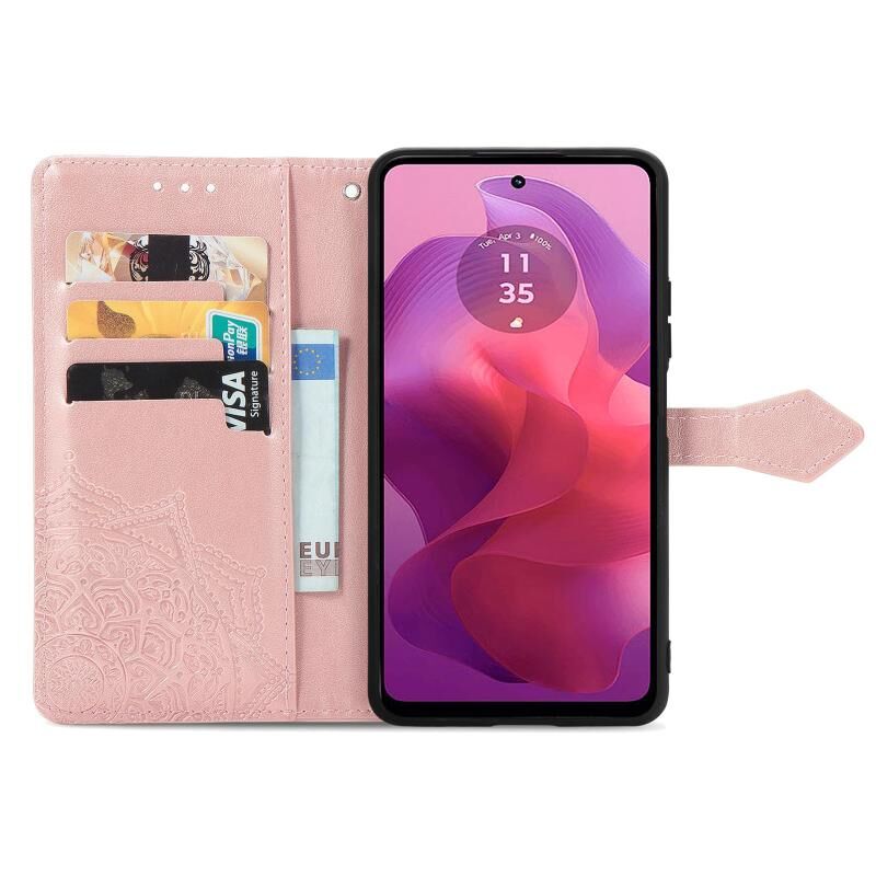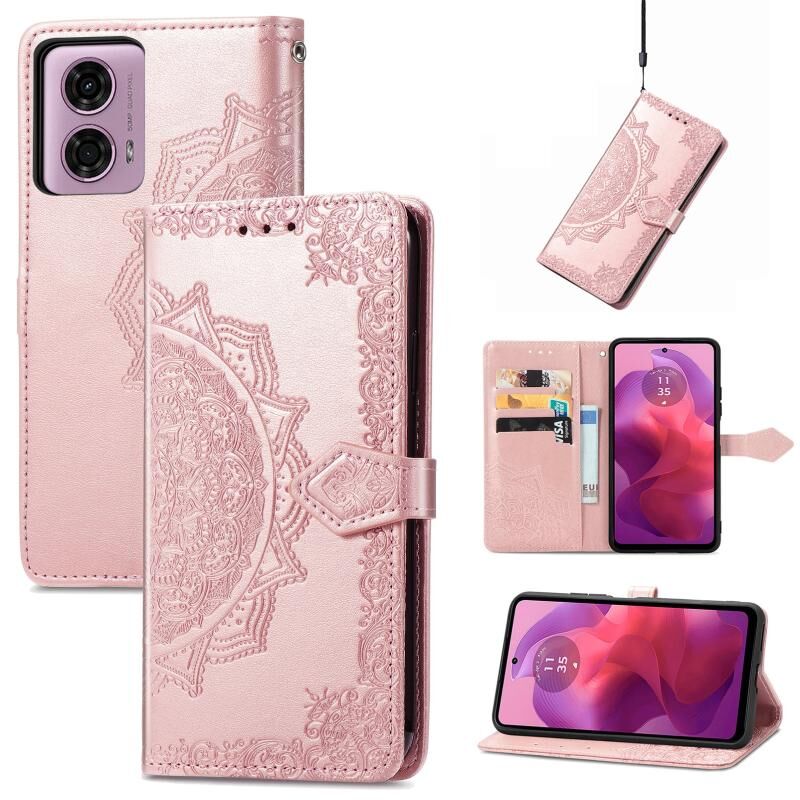 Θήκη τηλεφώνου δερμάτινη με ανάγλυφο σχέδιο λουλουδιών Mandala για Motorola Moto G24 (Μαύρο)