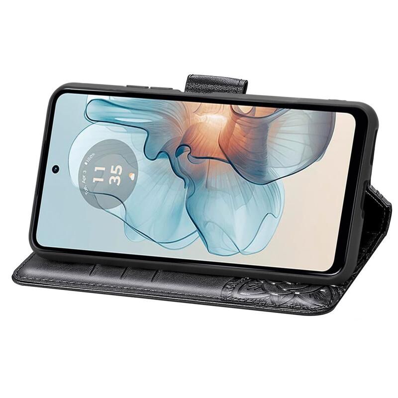 Θήκη τηλεφώνου δερμάτινη ανάγλυφη με σχέδιο πεταλούδας και λουλουδιών για Motorola Moto G24 Power (Μαύρο)
