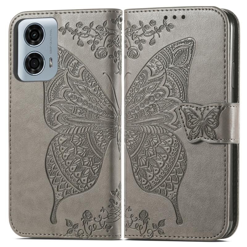 Θήκη τηλεφώνου δερμάτινη ανάγλυφη με σχέδιο πεταλούδας και λουλουδιών για Motorola Moto G24 Power (Μαύρο)