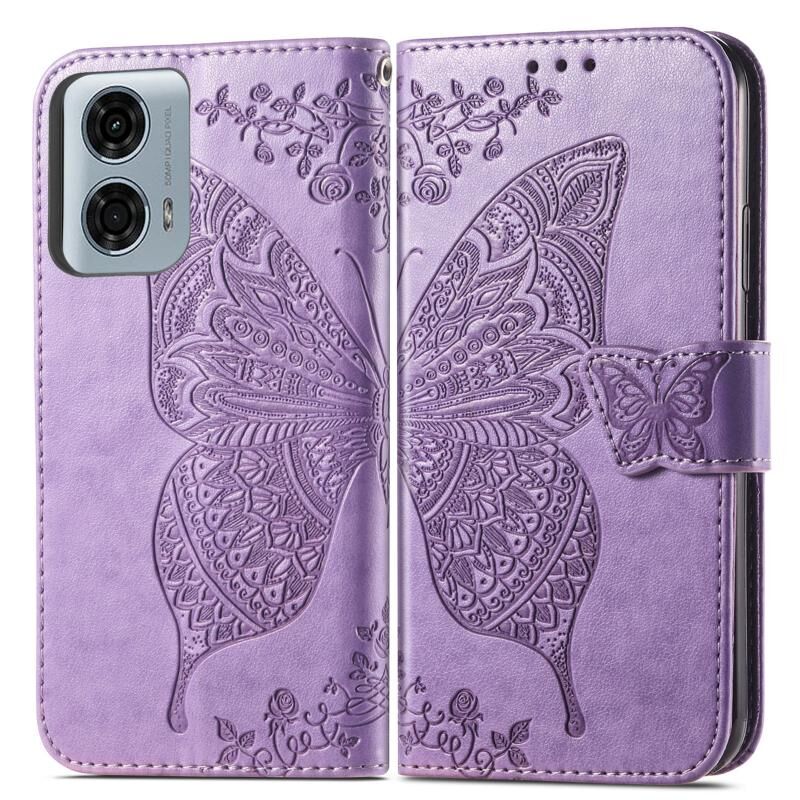 Θήκη τηλεφώνου δερμάτινη ανάγλυφη με σχέδιο πεταλούδας και λουλουδιών για Motorola Moto G24 Power (Μαύρο)