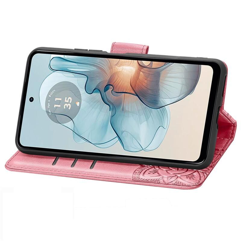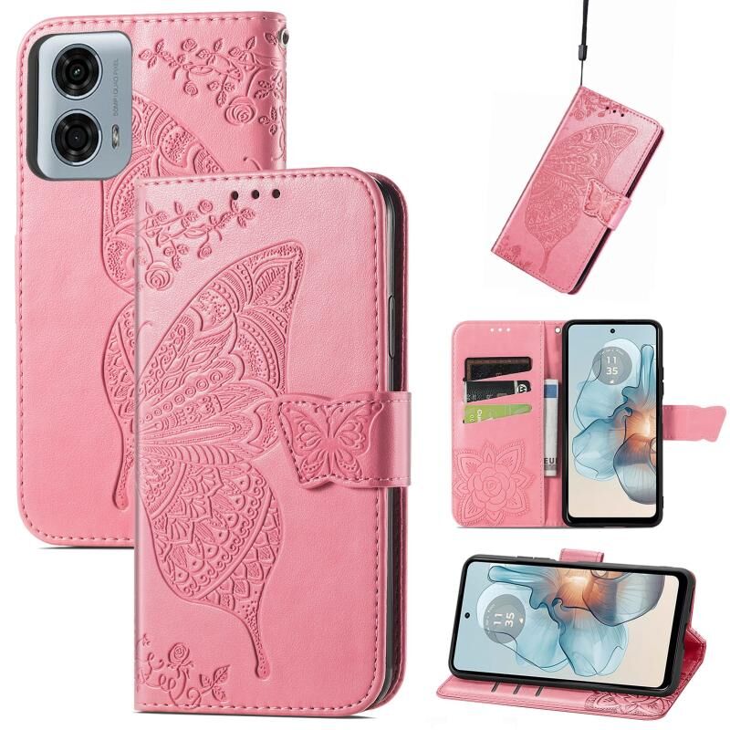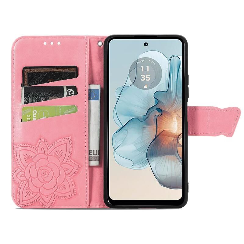 Θήκη τηλεφώνου δερμάτινη ανάγλυφη με σχέδιο πεταλούδας και λουλουδιών για Motorola Moto G24 Power (Μαύρο)
