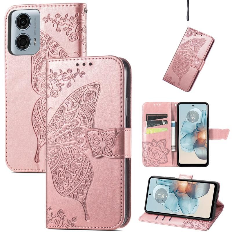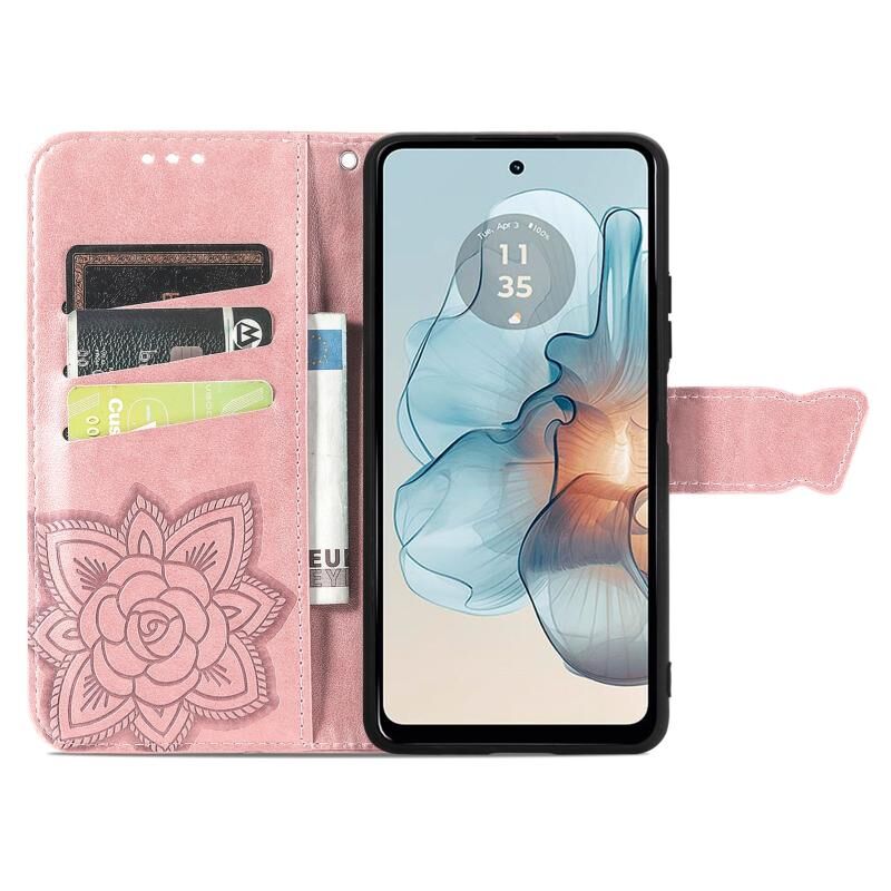 Θήκη τηλεφώνου δερμάτινη ανάγλυφη με σχέδιο πεταλούδας και λουλουδιών για Motorola Moto G24 Power (Μαύρο)