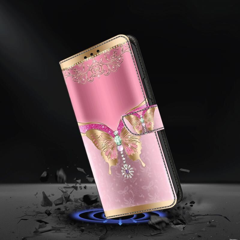 Θήκη κινητού τηλεφώνου από δέρμα, αντικραδασμική, προστατευτική 3D κρυστάλλου για Motorola Moto G24 Power (Ροζ πεταλούδα στο κάτω μέρος)