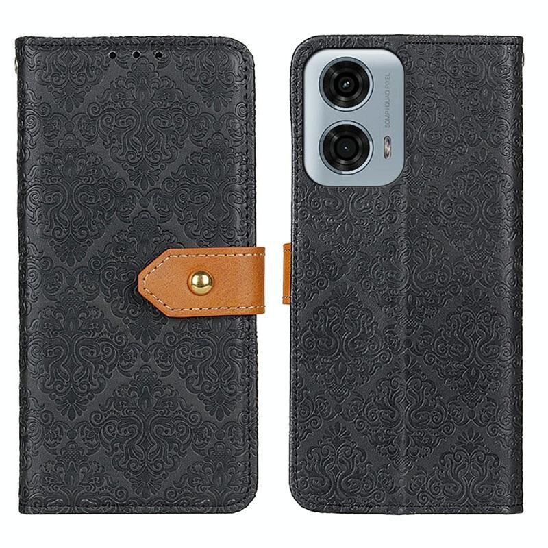 Για Motorola Moto G24 Power Ευρωπαϊκή Floral ανάγλυφη Flip δερμάτινη θήκη τηλεφώνου (Μαύρο)