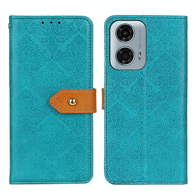 Για Motorola Moto G24 Power Ευρωπαϊκή Floral ανάγλυφη Flip δερμάτινη θήκη τηλεφώνου (Μπλε)