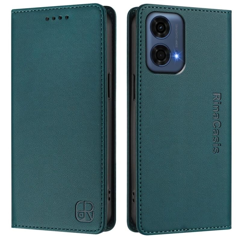 Θήκη τηλεφώνου δερμάτινη με μαγνητική απορρόφηση και διπλή πτυχή για Motorola Moto G24 Power India RC01 (Σκούρο πράσινο)
