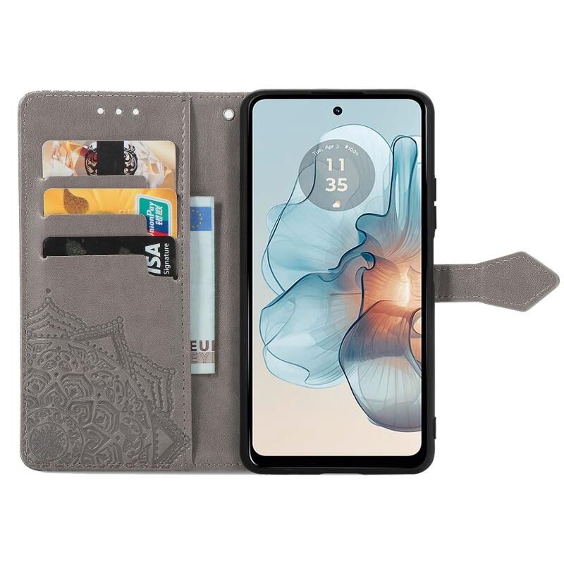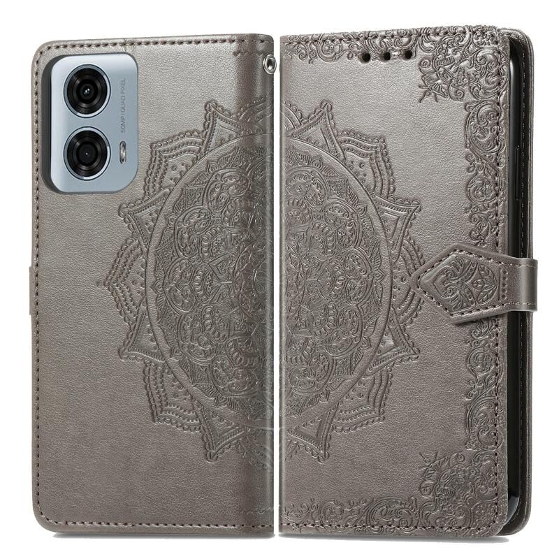 Για Motorola Moto G24 Power Mandala λουλούδι ανάγλυφο δερμάτινη θήκη τηλεφώνου (γκρι)