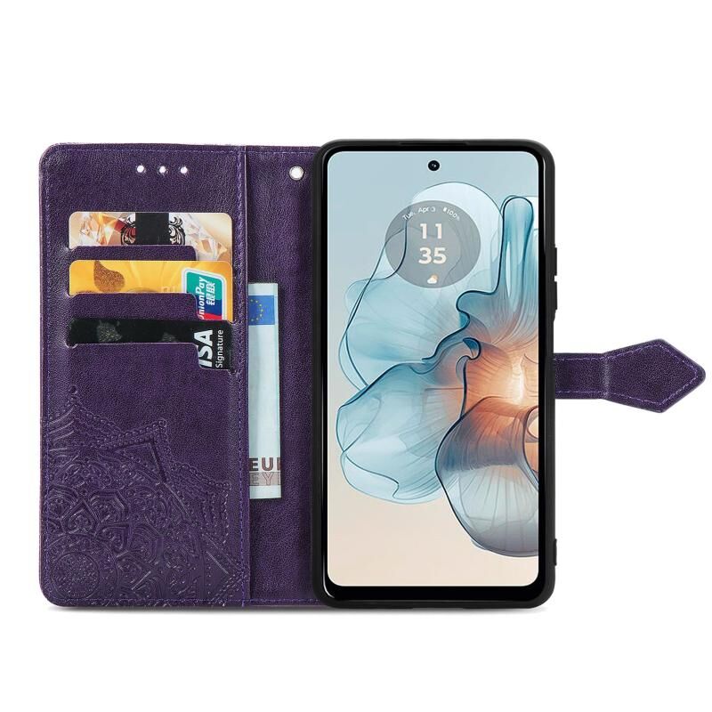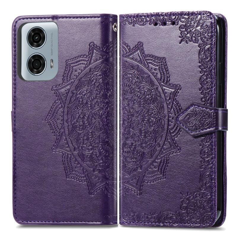 Για Motorola Moto G24 Power Mandala λουλούδι ανάγλυφο δερμάτινη θήκη τηλεφώνου (μωβ)