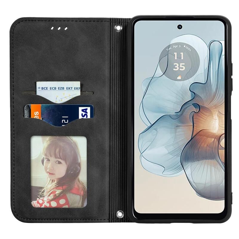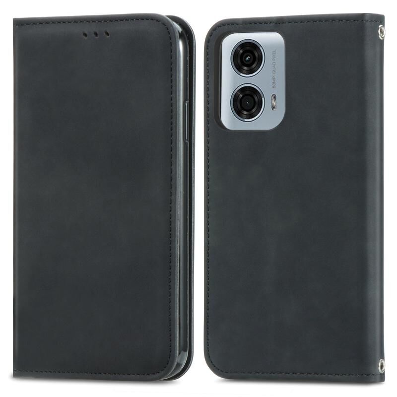 Για Motorola Moto G24 Power Retro Skin Feel Μαγνητική θήκη τηλεφώνου με δερμάτινη επένδυση (μαύρο)