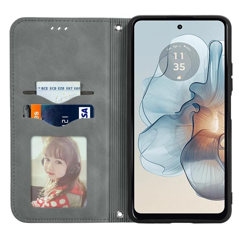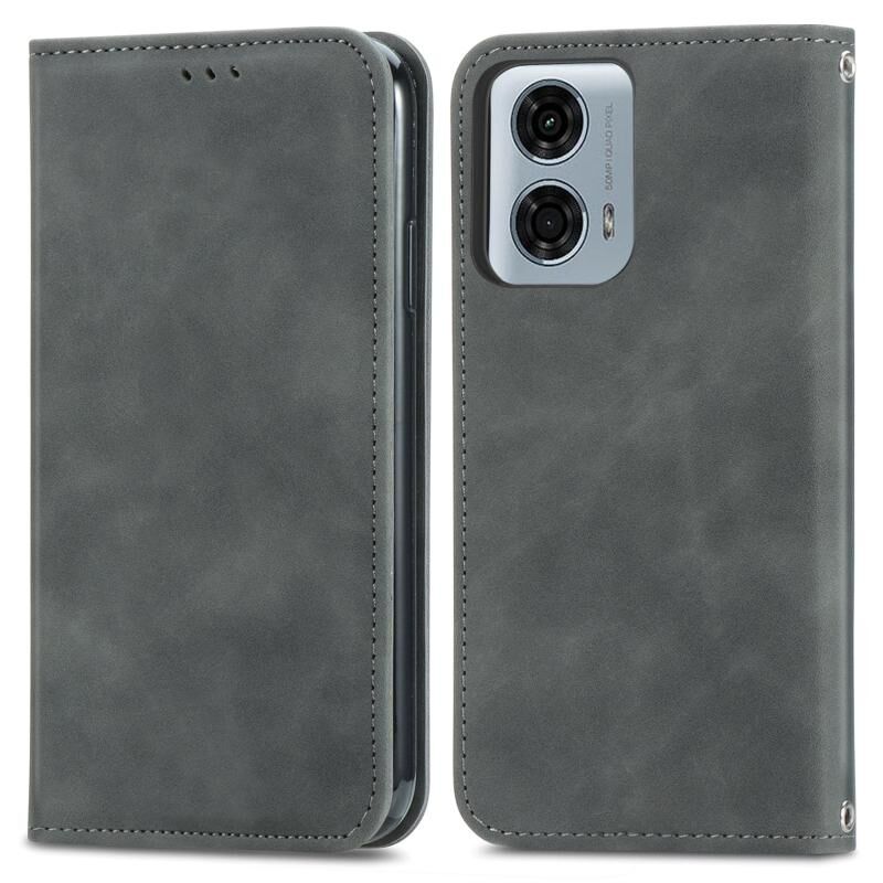 Για Motorola Moto G24 Power Retro Skin Feel Μαγνητική θήκη τηλεφώνου από δέρμα (γκρι)
