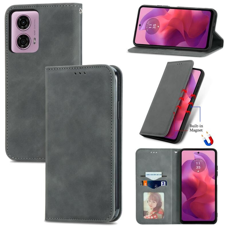 Θήκη κινητού τηλεφώνου Motorola Moto G24 Retro Skin Feel Μαγνητική Δερμάτινη Flip (Πράσινη)