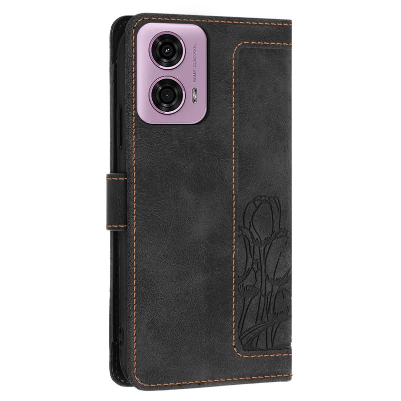 For Motorola Moto G24 Tulips Embossed Leather Phone Case with Lanyard(Black)