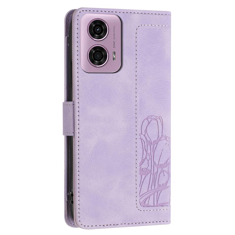 For Motorola Moto G24 Tulips Embossed Leather Phone Case with Lanyard(Purple)