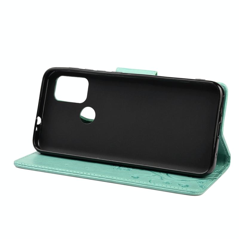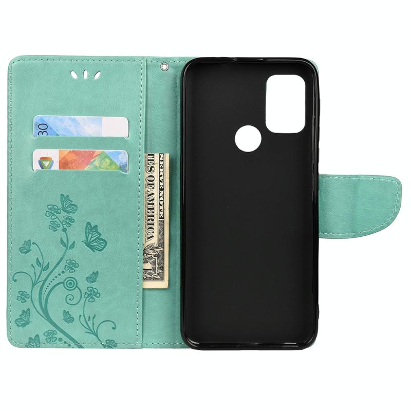 Θήκη δέρματος οριζόντιας αναδίπλωσης για Motorola Moto G30 με σχέδιο πεταλούδας και λουλουδιών, με βάση & υποδοχές καρτών & πορτοφόλι (Πράσινο)