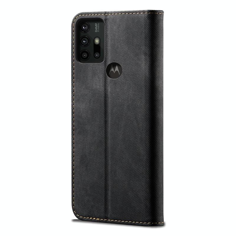Θήκη για Motorola Moto G30, Υφή Denim, Casual Στυλ, Οριζόντια, Δερμάτινη με Θήκη & Θήκες Καρτών & Πορτοφόλι (Καφέ)