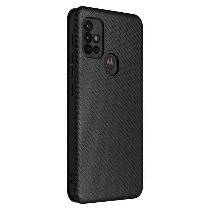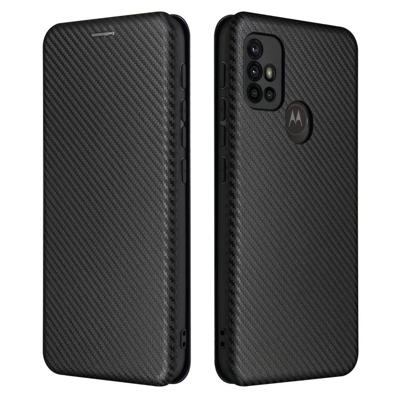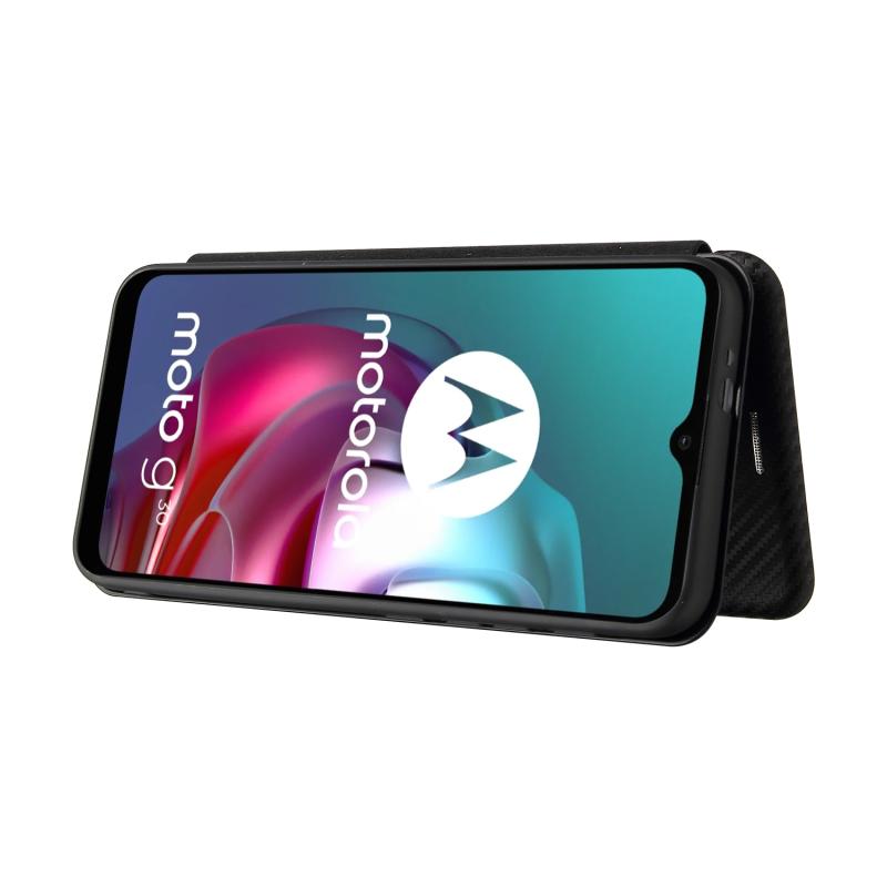 Θήκη για Motorola Moto G30 / G10 με υφή ανθρακονήματος, οριζόντια, από TPU + PC + Δερματίνη PU με θήκη για κάρτες (Μαύρο)