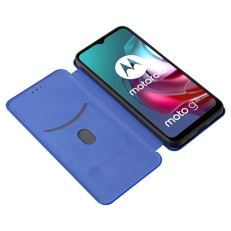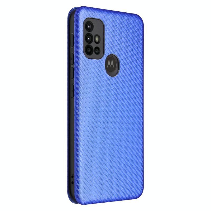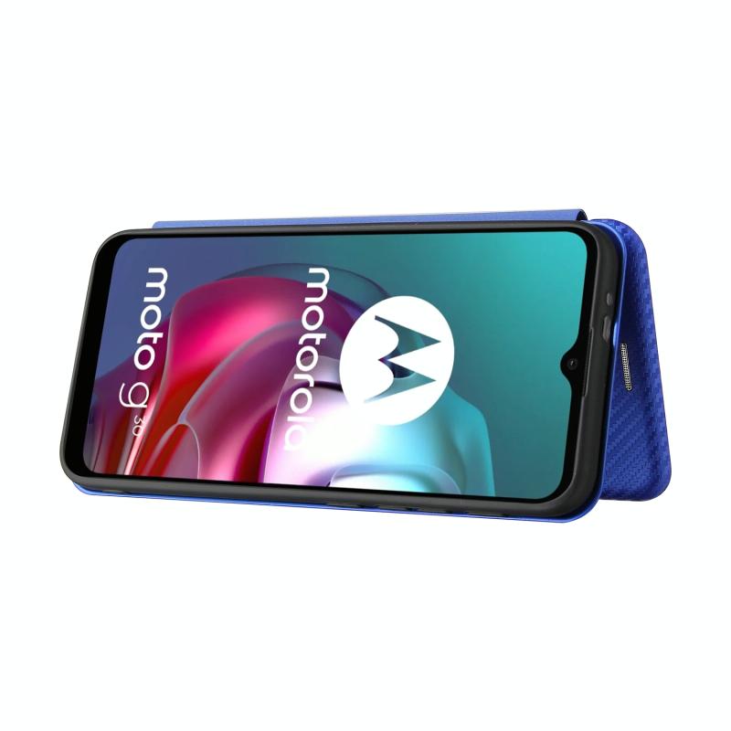 Θήκη για Motorola Moto G30 / G10 με υφή ανθρακονήματος, οριζόντια, από TPU + PC + Δερματίνη PU με θήκη για κάρτες (Μαύρο)