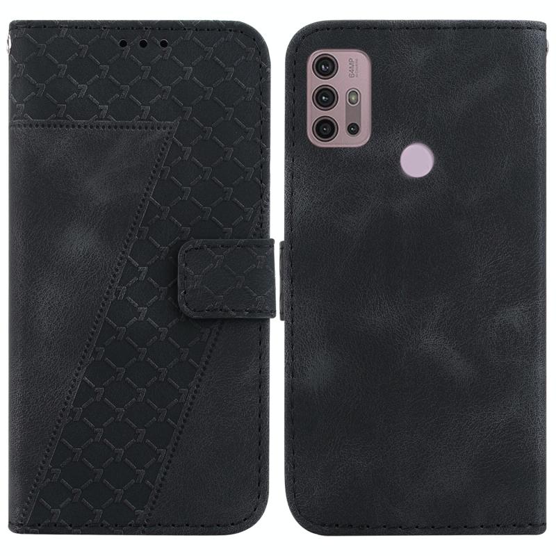 For Motorola Moto G30/G10/G20/G10 Power Seven-shaped Embossed Leather Phone Case(Black)