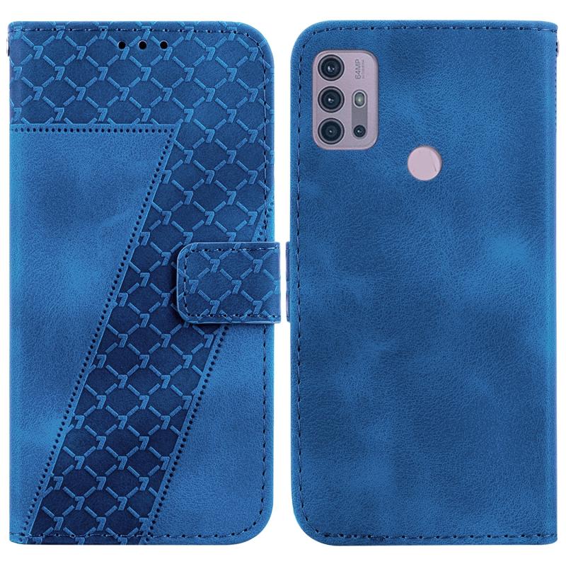For Motorola Moto G30/G10/G20/G10 Power Seven-shaped Embossed Leather Phone Case(Blue)