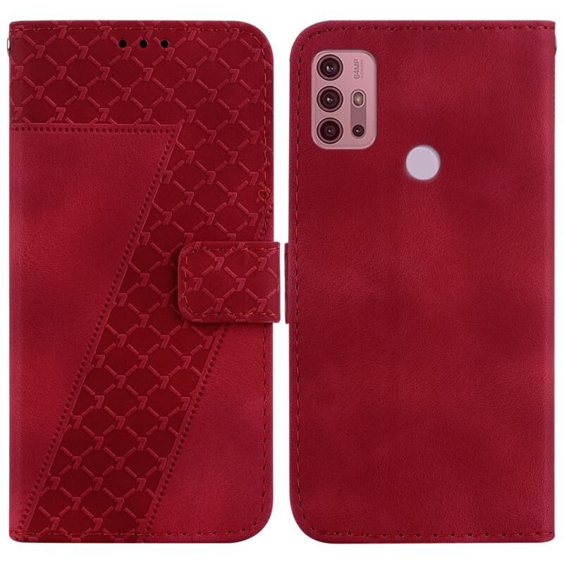 For Motorola Moto G30/G10/G20/G10 Power Seven-shaped Embossed Leather Phone Case(Red)